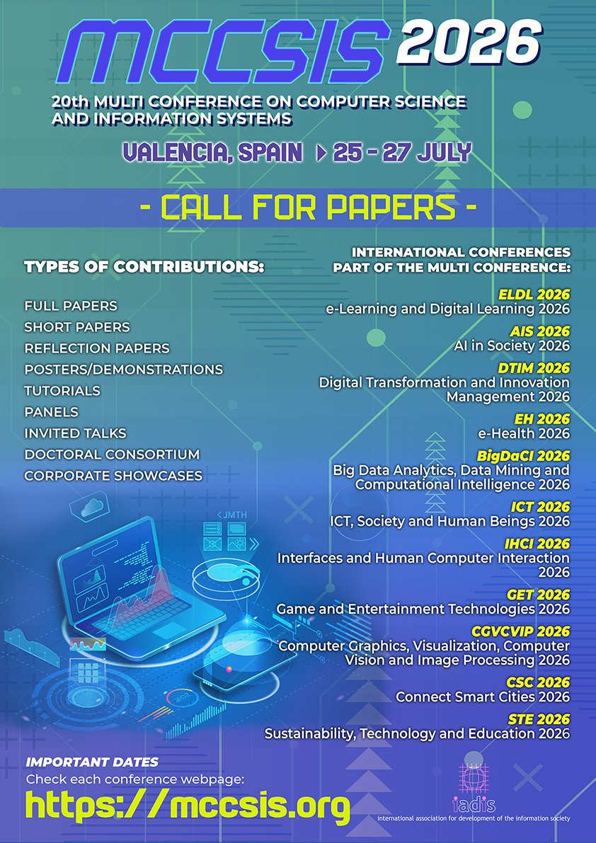 The Multi Conference on Computer Science and Information Systems (MCCSIS 2026) aims to address subjects like Computer Science, Information Systems and other emergent related fields. The multi conference has different conferences according to several themes.